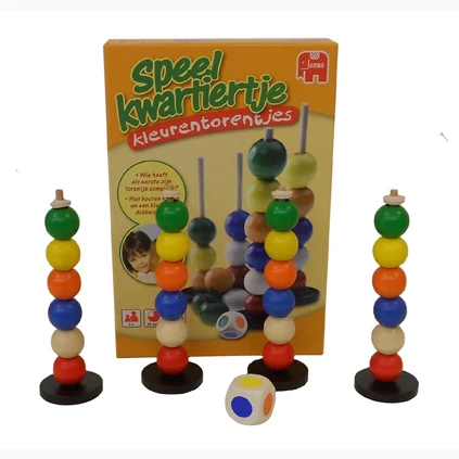 Eén van je eerste spelletjes. De dobbelsteen bepaald welke kleur kraal je op je torentje mag zetten en wie als eerste alle kleuren heeft heeft gewonnen.