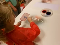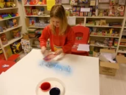 Het schort voor kinderen van 5 tot 8 jaar is rood.