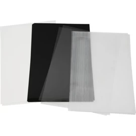 ook een vel matte, transparante folie, een vel matte, witte (semi