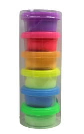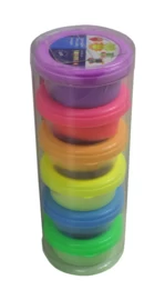 Set met 6 potjes lightclay in de kleuren roze, paars, oranje, geel, lichtgroen en lichtblauw.