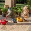 Dit is de Roberto duwkar van ItalTrike. Dit is echt een unieke loopkar. Echt super stevig en sterk, met grote zachte wielen en een echt uniek anti kiep systeem. Bij de achterwielen zit een uitklapbaar niet-omval trucje. Als je die inschakeld, dan kan de kar gewoon echt niet meer achterover kiepen.