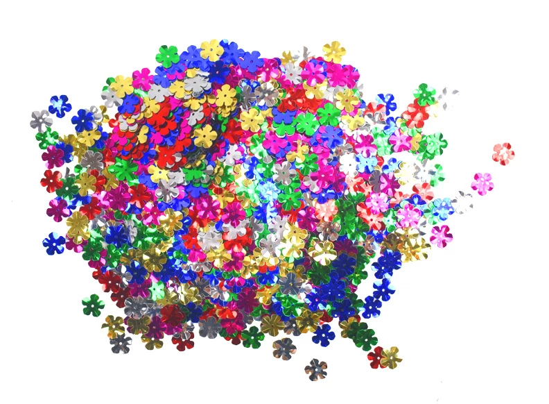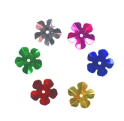 Pailletten in de vorm van bloemetjes, met een gaatje in het midden.