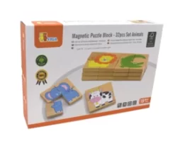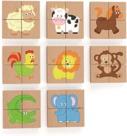 Set van 8 houten puzzeltjes die magnetisch zijn; superleuk voor bij het magnetisch wandbord.