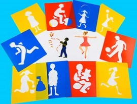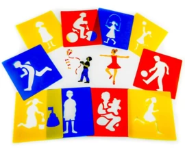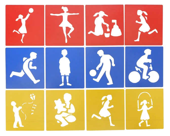 Set van 12 sjablonen met sport en spel elementen.