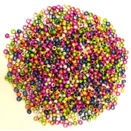 De kralen met grote gaten hebben we nu ook in een metallic variant. Prachtig glimmende kralen die heel leuk zijn om sieraden mee te maken.