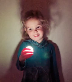 Een klein, van kleur veranderd lichtbolletje dat je in je hand kan houden.