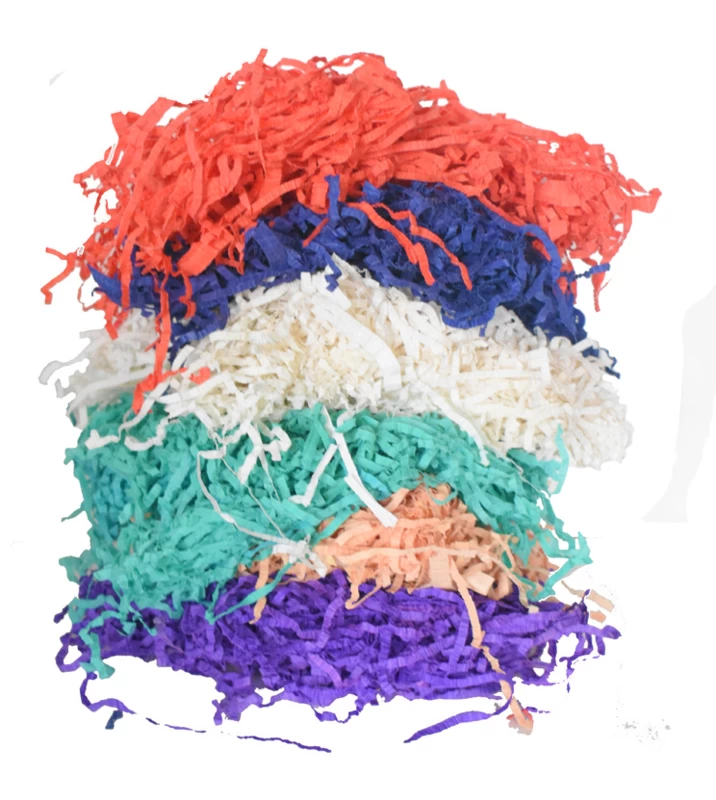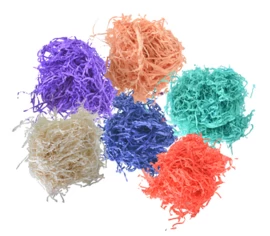 Papier raffie zijn smalle strookjes crepe papier dat leuk is als decoratie, of als vulling van bijvoorbeeld een mandje.