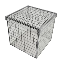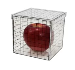 Een transparante box van precies 10 x 10 x 10cm met een duidelijk raster erop.