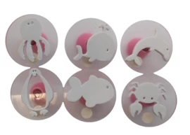 In deze serie zitten: een krab, een walvis, een dolfijn, een inktvis, een guppie en een pinguin.