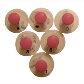 Set van 6 grote stempels met een diameter van 7,5 cm! Ze hebben hele grote knoppen en zijn dus makkelijk te hanteren.