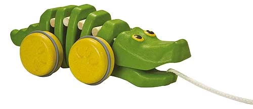 De krokodil heeft een lang touw zodat je hem met je mee kan trekken als je loopt.