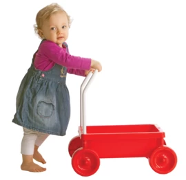 Met remsysteem op de achteras die je zelf in kan stellen. Daarmee voorkom je dat het karretje er ineens vandoor gaat als je loopt.