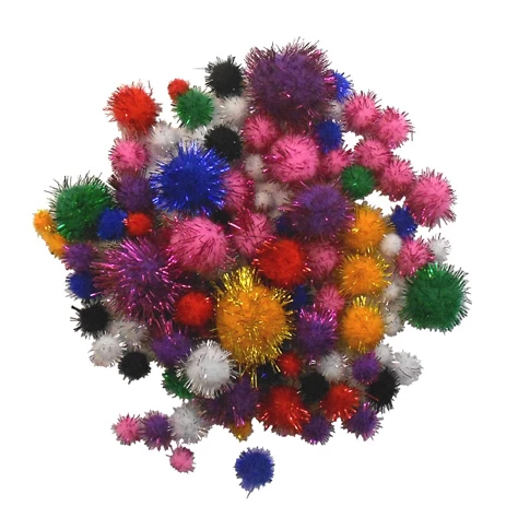 Zak met 100 glitter pompoms.