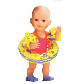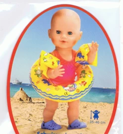 Deze zwemaccesoires zijn geschikt voor poppen van 32 tot 38cm. Onze blote poppen en onze badpoppen passen deze zwemspullen uitstekend! Maar bijvoorbeeld ook BabyBorn past deze zewmbandjes.