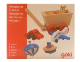 Setje met kleine houten accessores voor in het poppenhuis.