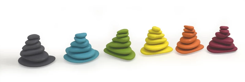 De stenen zijn gemaakt van zwaar kunststof. Ze lijken echt op stenen en voelen ook zwaar aan, maar breken niet en voelen ook niet aan als steen. In prachtige, moderne kleuren; wel kleurrijk, maar niet zo superfel.