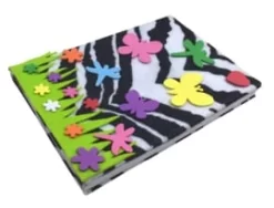 Op de foto met het knutselvoorbeeld zie je een notitieboekje bekleed met zebra vilt… hiervoor heb ik gewoon hobbylijm gebruikt.