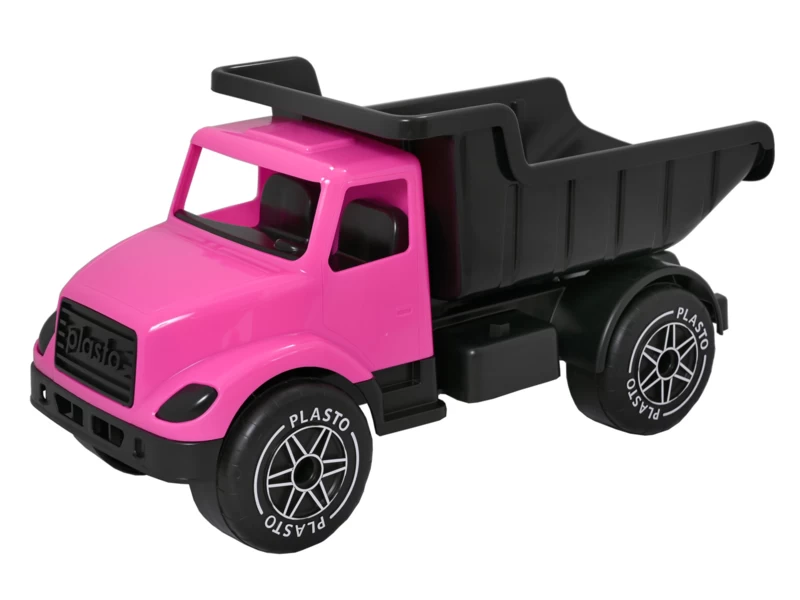 Ook stoer en lief, deze oersterke kiepwagen met een lengte van 30 cm.
