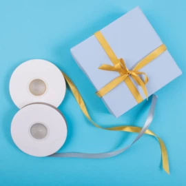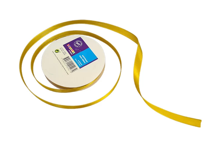 Rol met wel 30 meter zacht glanzend satijnband van 10mm breed in de kleur goud.
