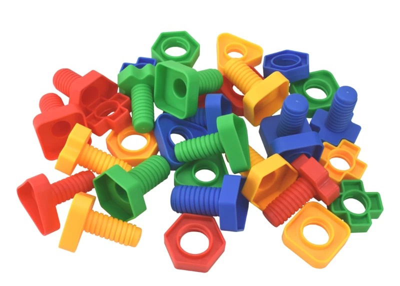 Schroeven zijn heel goed voor het oefenenvan de fijne motoriek, omdat je er altijd 2 handen bij nodig hebt.