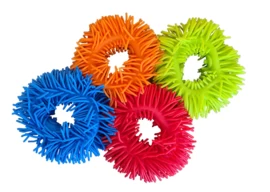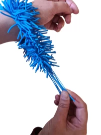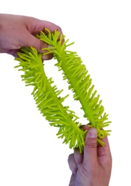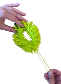 Deze band is flexibel en heel zacht; dat voelt echt prettig om je arm. Je kan hem rollen, trekken en in alle vormen kneden die je maar wilt. Je kan hem uitrekken en aan de sprieten trekken en er heerlijk mee prutsen.