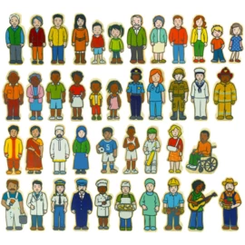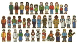 Super diverse set met groot, klein, dik, dun, licht, donker en alle verschillen die er bij mensen in het dagelijks leven gewoon zijn. Daarom voor iedereen herkenbaar en heel bruikbaar bij ontelbaar veel spellen en verhalen.