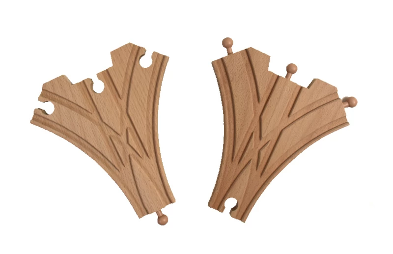 Set van 2 stukken rails waarmee je een treinbaan in drieën kan splitsen, of 3 banen samen kan voegen tot 1.
