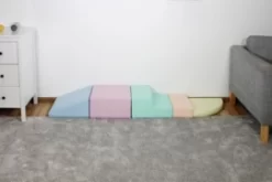 Deze Speelhoek is uitgevoerd in diverse lichte pasteltinten kunstleer en past dus goed in een hedendaags interieur. Je kunt hem neerleggen in een hoek, maar natuurlijk ook vrij in de ruimte of in een lengte-opstelling.Â