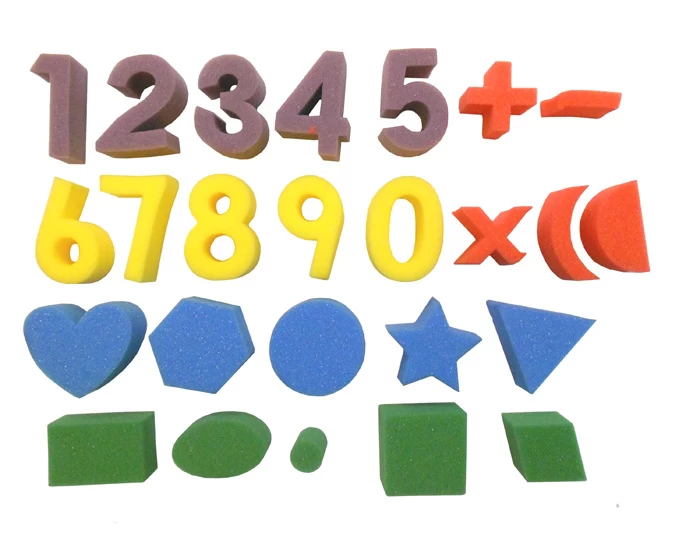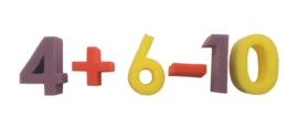 In de set zitten de cijfers 0 tot en met 9, de tekens + – x en ( (als je een = wilt maken gebruik je 2x de -) en dan nog een heleboel verschillende vormen.