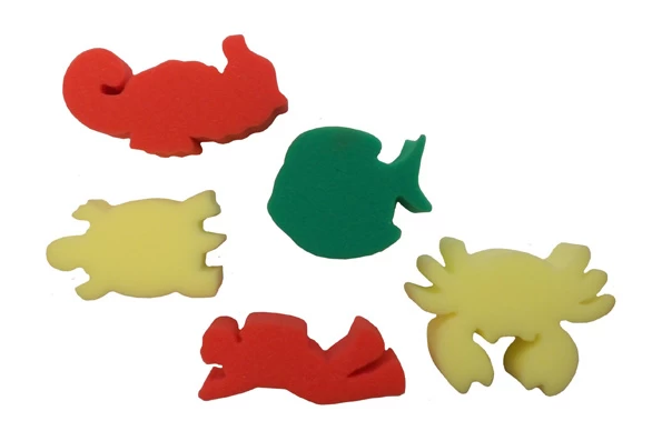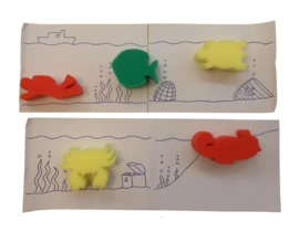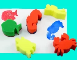 De set bestaat uit 5 grote sponsstempels allemaal figuren die je bij het water vindt.