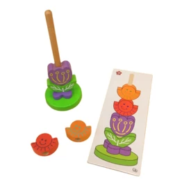 Leer kleuren en vormen herkennen en oefen je fijne motoriek door de kralen op pin te stapelen.