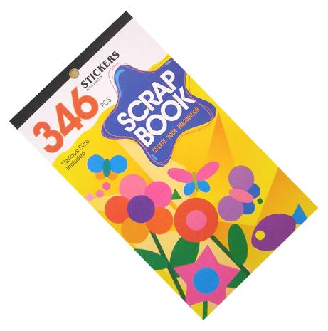 Boekje met 346 felgekleurde stickers in een heleboel verschillende vormen.