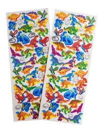 Set van 2 stickervellen met allemaal stickers van verschillende, vrolijk gekleurde dino’s.