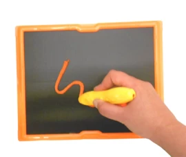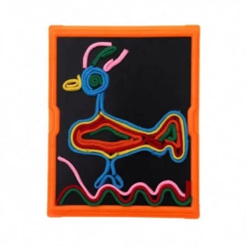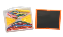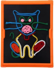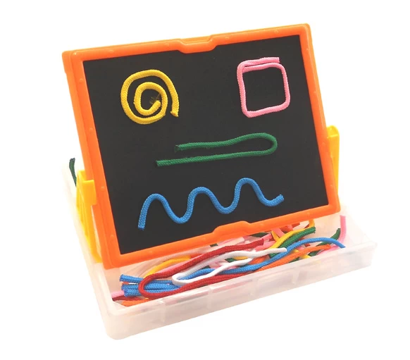 Klittenbandbord waar je op kan tekenen met touwtjes.