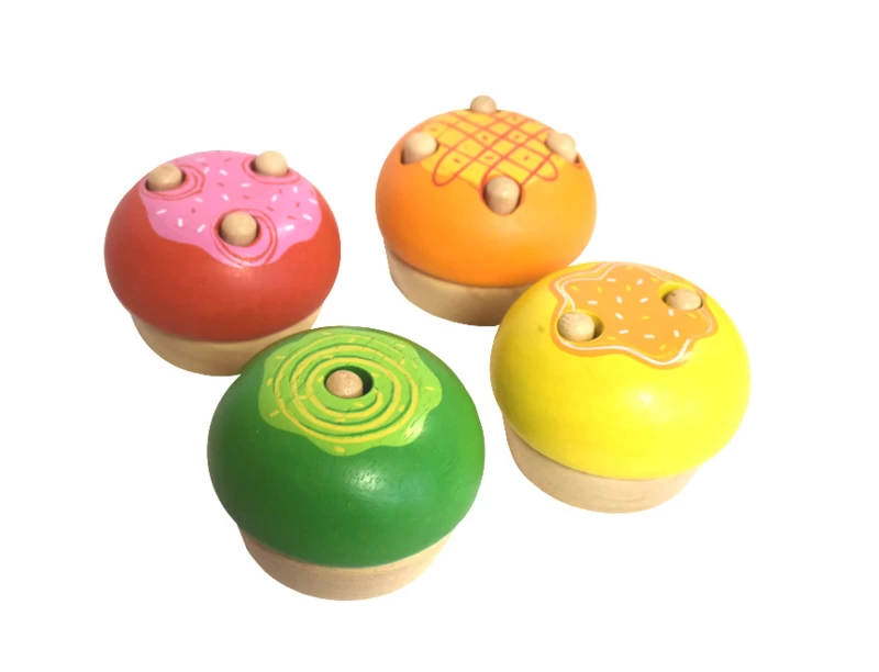 Set van 4 houten cupcakes in verschillende kleuren.