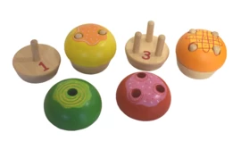 Elke cupcake bestaat uit 2 lagen. De gekleurde laag puzzel je op de onderkant door hem op de houten pinnetjes te plaatsen.