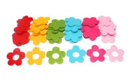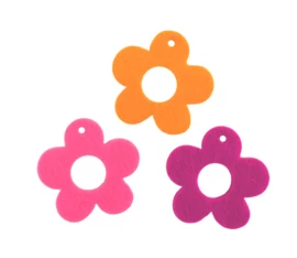 Het hartje van de bloem kan je eruit drukken en ook zit er een klein gaatje in om de bloem aan een veter of rijgsnoer te hangen.
