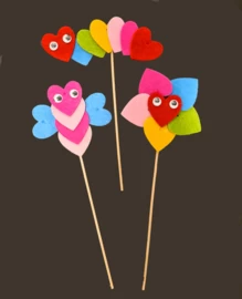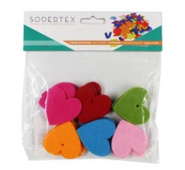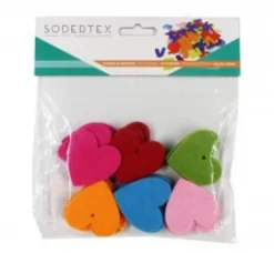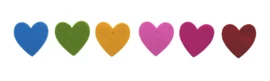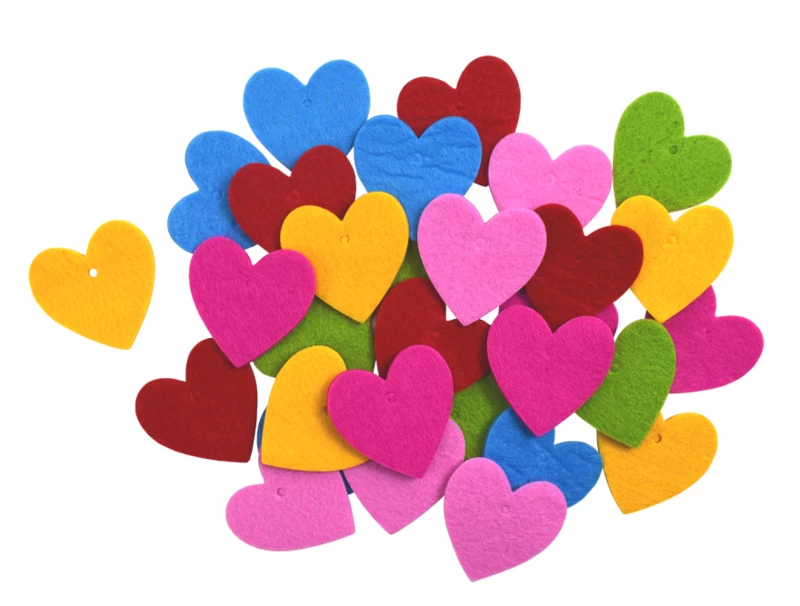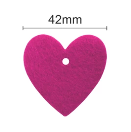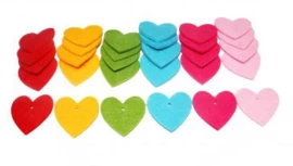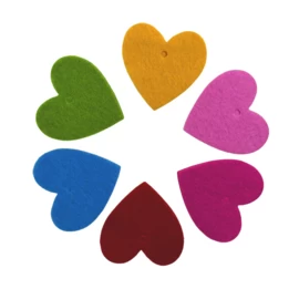 De hartjes zijn gemaakt van stevig, dik vilt van wel 3mm dik. In 6 vrolijke kleuren.