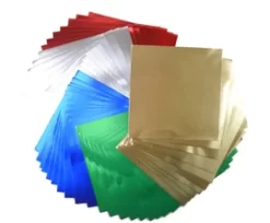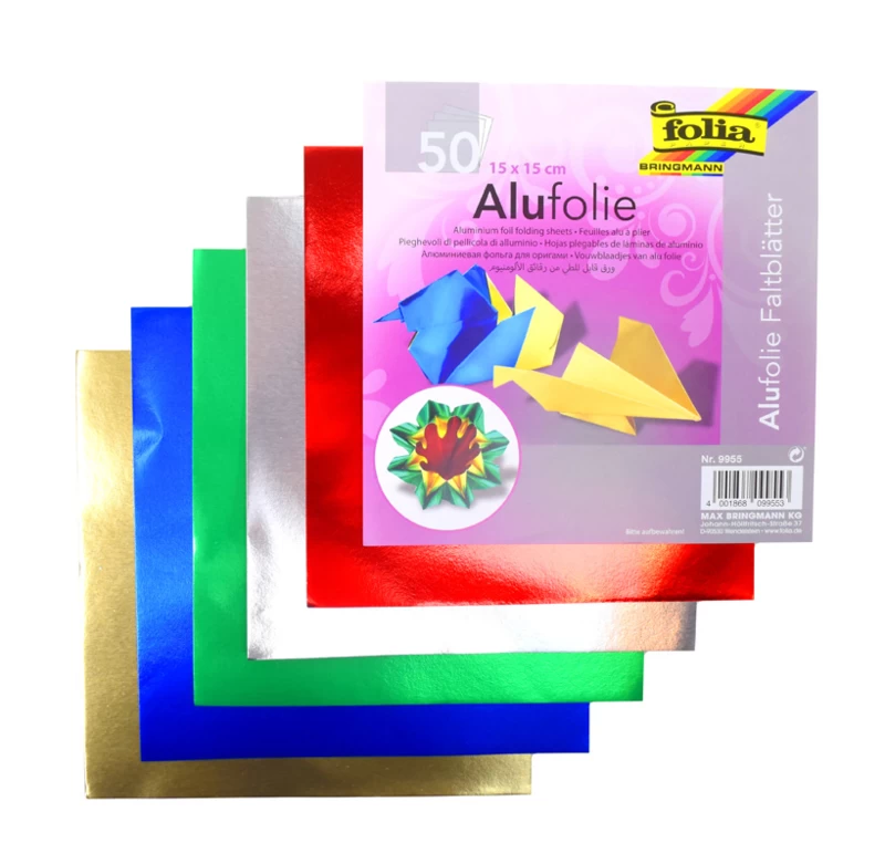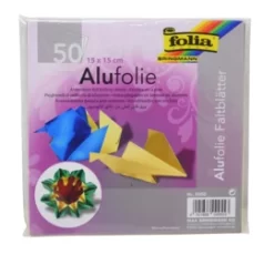 Set van 50 vouwblaadjes van 15 x 15cm met een glanzende metallic look.