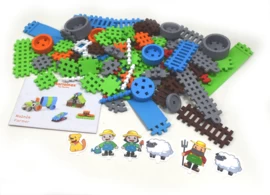 De boerderij is een uitgebreide set met veel wafels, wielen, daken en figuurtjes. Maar ook heeft deze set (als enige) wat grotere platen die je als grondplaat kan gebruiken.
