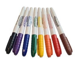 Je kan het getekende zo weer uitvegen met een droge doek. In het engels heten deze stiften dry erase markers (droog uitwissen stiften).