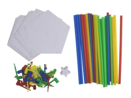In een zak zitten alle onderdelen om 24 windmolentjes te maken.